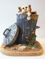 Chat dans la poubelle -En résine Haut 15 cm, 11 cm de large