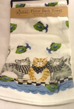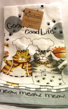 Les chats joueurs -torchon épais 100% coton, 3 motifs de chats joueurs, dim 74 x 48 cm