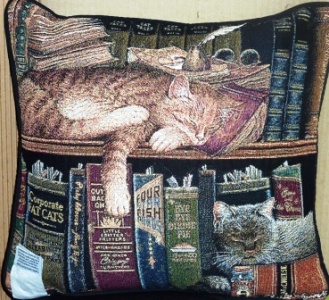 Chat dans les livres -Vendu avec son rembourrage, dim 40 x40 cm