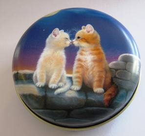 Les chats amoureux sous la lune -En métal, ronde, diamètre 8 cm hauteur 3 cm