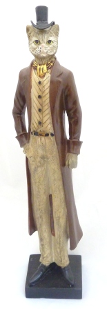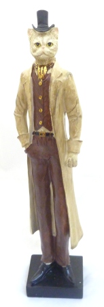 Redingote beige -En résine, chat gris clair habillé d une redingote beige hauteur 31,50 cm