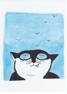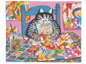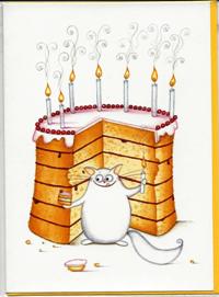 Chat anniversaire -Dessin de Claire Mackie, Réf GMKE 110, Dim 17 x 12 cm