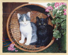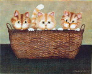 les chats dans le panier -15,5 cm de large et 12,5 cm de haut