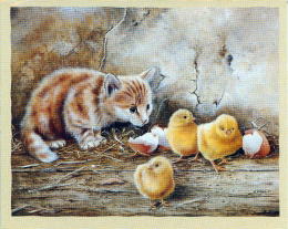 Le chat et les poussins -15,5 cm de large et 12,5 cm de haut