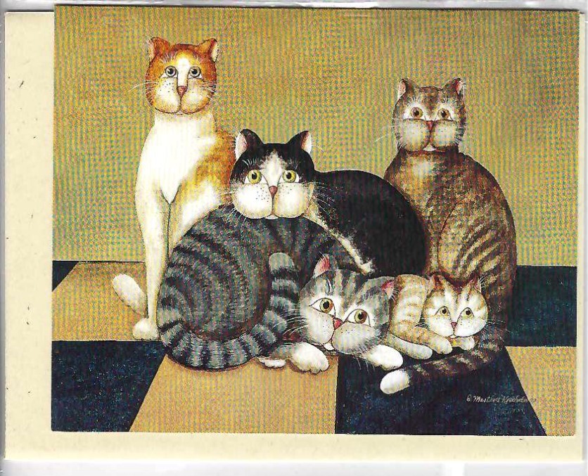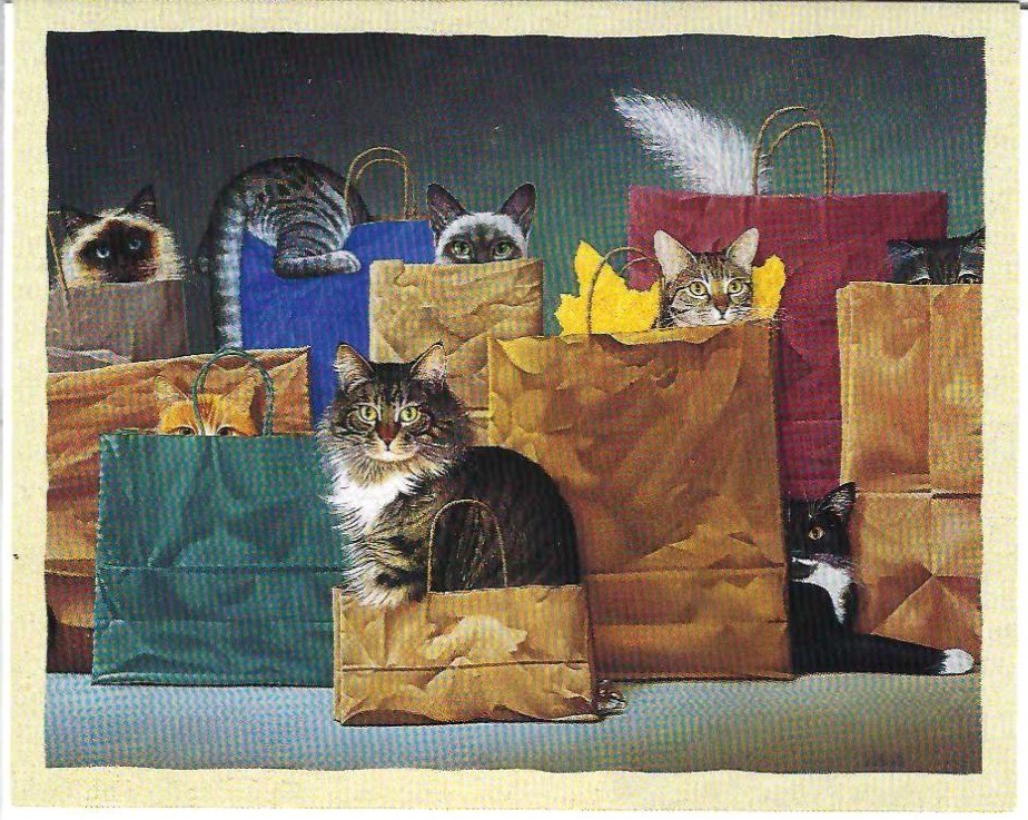 Les chats dans le carton -Vendue avec enveloppe,15,5 cm de large et 12,5 cm de haut