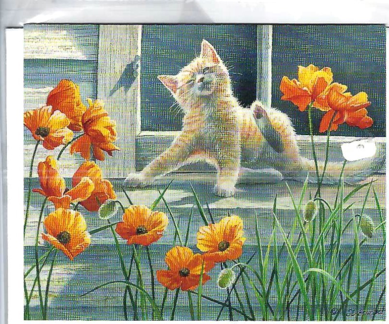 Le chat dans les pavots -12,5 cm x 10,5 cm
