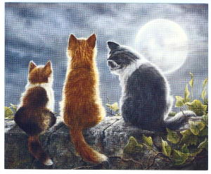 Les 3 chats dans la lune -12,5 cm x 10,5 cm