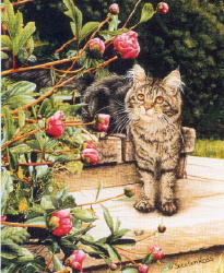 Le chat dans les pivoines -12,5 cm x 10,5 cm
