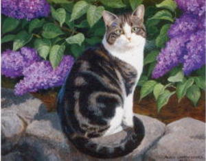 Le chat dans le lilas -12,5 cm x 10,5 cm