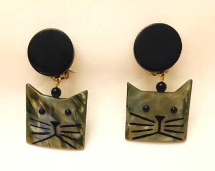 Boucles d'oreilles chat gris , en galalithe composée à partir de la caséïne du lait et entièrement fait main. Pour oreilles non percées également. Largeur 3 cm et 3 cm de haut.