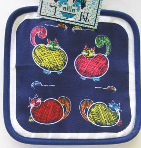 Meow bleu -dim 31 cm , dessus 100% coton et dessous téflon