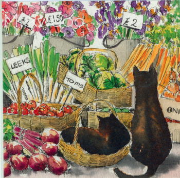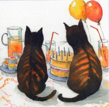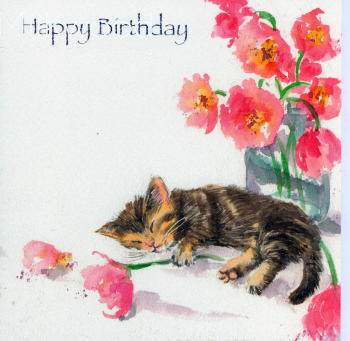 Ed Milkwood -My cat , Réf TC26, Aquarelle sur beau papier gauffré vendue avec son enveloppe, dim 16 x 16 cm
