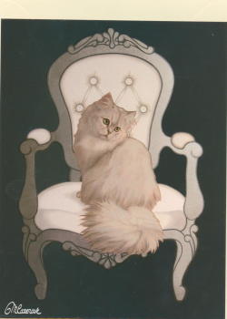 Avec son enveloppe -British longhair sur un fauteuil, illustré par Maryline Cazenave, edition Phenicia, dim 13 x 17 cm,Réf A001