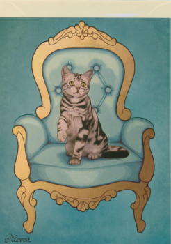 Avec son enveloppe -British shorthair sur un fauteuil, illustré par Maryline Cazenave, edition Phenicia, dim 13 x 17 cm,Réf A007
