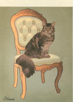 Avec son enveloppe -Maine coon sur un fauteuil, illustré par Maryline Cazenave, edition Phenicia, dim 13 x 17 cm,Réf A003