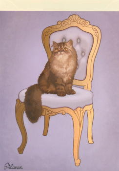 Avec son enveloppe -Persan brown tabby sur un fauteuil, illustré par Maryline Cazenave, edition Phenicia, dim 13 x 17 cm,Réf A009
