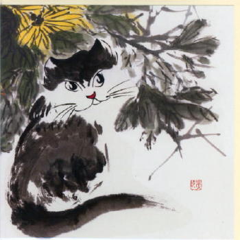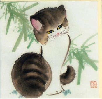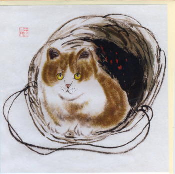 Avec son enveloppe -Chat chinois dans son panier,Edition Catch, Réf NC 4980, dim 12 x 12