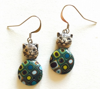 Boucle d'oreilles chats mini -Contour argenté, 2,5 cm x 1,5 cm Métal et polymère. Les motifs colorés font partie du modèle (ils ne sont pas peints). Fabrication artisanal en france