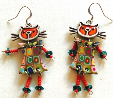 Boucle d'oreilles chat articulé -6 cm x 3 cm Chat articulé , en polymère. Les motifs colorés font partie du modèle (ils ne sont pas peints). Fabrication artisanal en france