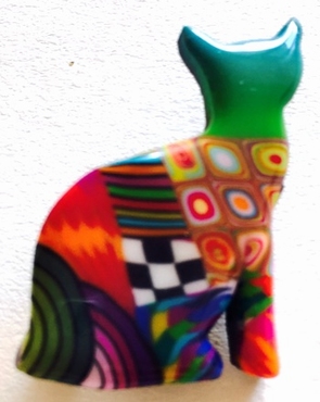 Broche petit chat Multicolore -En argile polymère. 3 cm x 2,5 cm Les motifs colorés font partie du modèle (ils ne sont pas peints). Fabrication artisanal en france