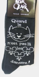 Noir clair -Quand le chat n est pas la , les souris dansent.Taille unique du 39 au 44, Coloris noir