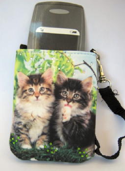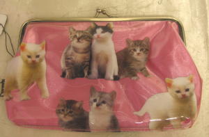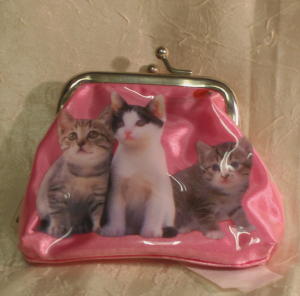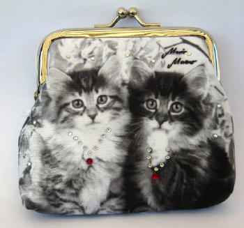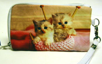 Les chatons dans la laine -Pochette fermée par une fermeture avec une dragonne, doublée avec poches, Dim 14 cm x 8 cm