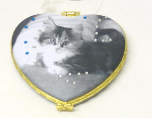 photos de chat en noir et blanc -En forme de coeur, recouvert de tissu microfibre et 2 mirroirs ? l'intérieur, matière microfibre,dimensions 7 x 7 cm