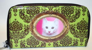 Le chat baroque -En vinyl brillant,intérieur plastique transparent, petite pochette intérieure haut 13 cm x large 22 cm