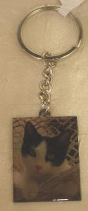 Chaton noir et blanc -Photo de chat recouvert de résine sur une fine plaqué en métal Hauteur 4 cm et 3 cm de large