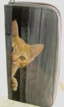 Le chat roux -En vinyl brillant, doublé et fermeture éclair Haut 10 cm et 11,5 cm de large