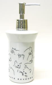 Chats rêveurs -En faience blanche motif chats noirs, hauteur 12 cm