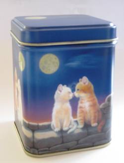 Les chats amoureux sous la lune -En métal, carrée, dim 7 x 7 cm hauteur 9 cm