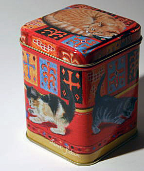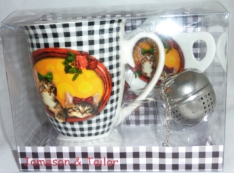 Chats rétro -Mug en porcelaine, boule à infuser le thé et soucoupe repose-thé Le tout vendu dans sa boite.