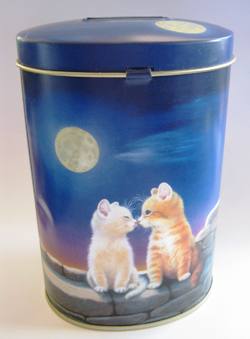 Les chats amoureux sous la lune -En métal, ronde, diamètre 8 cm hauteur 3 cm