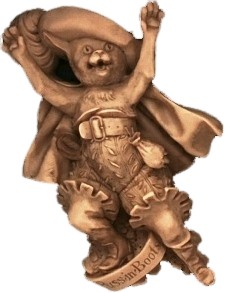 Redingote bordeaux -En résine, chat gris habillé d une redingote bordeaux hauteur 31,50 cm