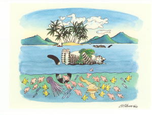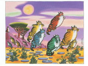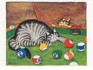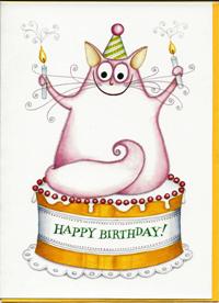 Chat anniversaire -Dessin de Claire Mackie, Réf GMKE 110, Dim 17 x 12 cm