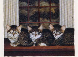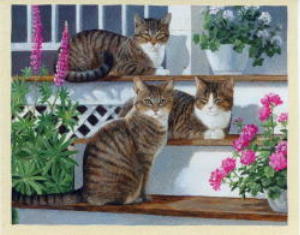 3 Chats sur le perron -12,5 cm x 10,5 cm