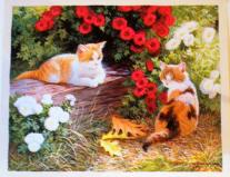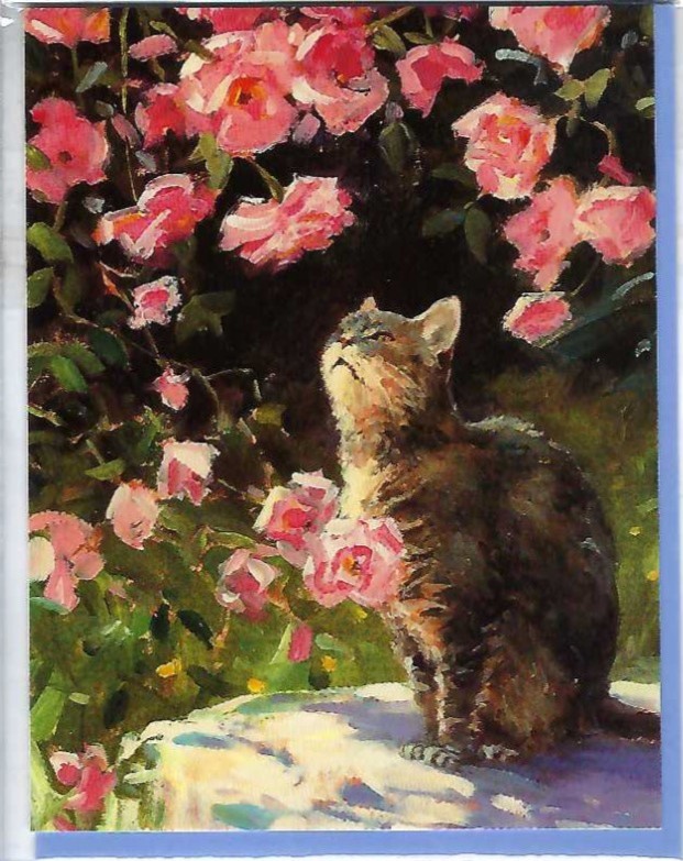 Le chat dans les pivoines -12,5 cm x 10,5 cm