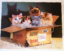 Les chats dans le carton -Vendue avec enveloppe,15,5 cm de large et 12,5 cm de haut