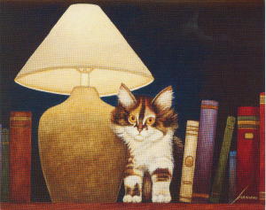 Le chat sur l étagère -15,5 cm de large et 12,5 cm de haut