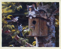 Le chat sur le nichoir -15,5 cm de large et 12,5 cm de haut