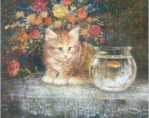 Le chat et le poisson rouge -12,5 cm x 10,5 cm