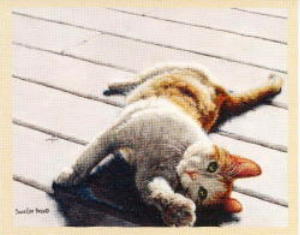 Le chat dans les pavots -12,5 cm x 10,5 cm