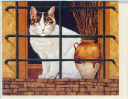 Le chat sur la barrière -15,5 cm de large et 12,5 cm de haut