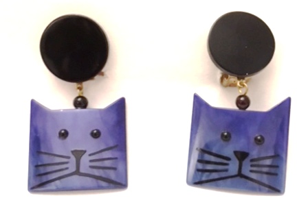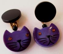 Boucles d'oreilles chat violets , en galalithe composée à partir de la caséïne du lait et entièrement fait main. Pour oreilles non percées également. Largeur 2.5 cm et 2.5 cm de haut.
