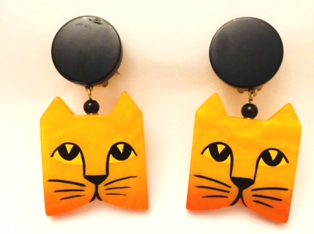 Boucles d'oreilles chat jaune , en galalithe composée à partir de la caséïne du lait et entièrement fait main. Pour oreilles non percées également. Largeur 3 cm et 3.5 cm de haut.