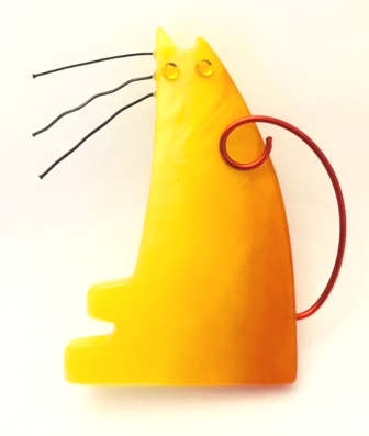 Broche chat jaune , en galalithe composée à partir de la caséïne du lait et entièrement fait main. signée Pavone. Largeur 6 cm et 4 de haut.