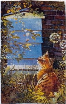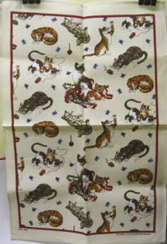 Chats et papillons -100 % lin , dimensions 48 x 73 cm