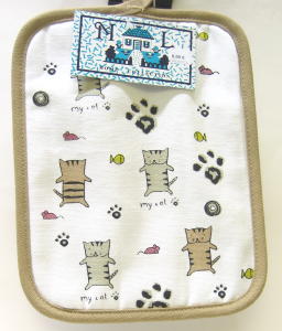 Motif Meow -une face téflon,coton beige, largeur 22 cm x 24 cm de haut