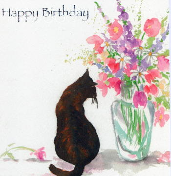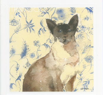 Ed Milkwood -My cat , Réf TC26, Aquarelle sur beau papier gauffré vendue avec son enveloppe, dim 16 x 16 cm
